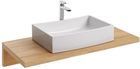 - blaty z drewna – ten naturalny surowiec współgra z ciepłym i przytulnym wnętrzem łazienki lub też ociepla nowoczesną przestrzeń z dominującymi zimnymi barwami. Twarde drewno (bukowe czy też dębowe) o dużej gęstości zdecydowanie lepiej znosi warunki podwyższonej wilgotności, należy również pamiętać o odpowiedniej impregnacji. Dostępne w wielu odcieniach oraz wariantach kolorystycznych, z powłoką błyszczącą lub matową;